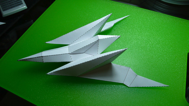 A Beta(overly complex) version of a papercraft toy of the Arwing Fighter Ship from Nintendo's StarFox 64 video game.